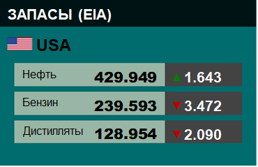 Запасы дистиллятов упали на -2.09 до 128.954 млн. баррелей.