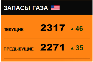 По сообщению статистической службы EIA запасы газа в США на 9.08.2018 составили 2317 млрд. куб. футов. За неделю запасы природного газа в хранилищах выросли на 46 млрд. куб. футов. По итогам недели рост запасов газа составил 2.03 процента.