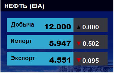 Добыча нефти не изменилась и составляет 12 млн. баррелей в день. Импорт нефти упал на -0.502 до 5.947 млн. баррелей в день. Экспорт нефти упал на -0.095 до 4.551 млн. баррелей в день. Таким образом, чистый импорт нефти упал на -0.407 до 1.396 млн. баррелей в день. Переработка нефти выросла на 0.7 до 91.3 процента.