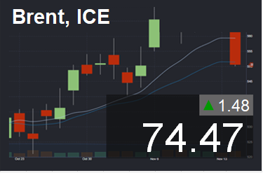 Цена в долларах за баррель. Для пересчета в доллары за тонну нефти марки Brent, необходимо цену умножить на 7,59.