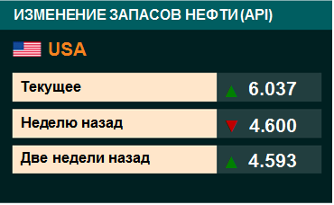 Коммерческие запасы нефти в США по данным института API выросли на 6.037 млн. баррелей.