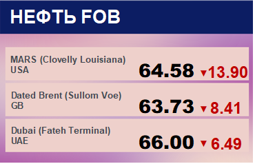 Цены на нефть сорта WTI с базиса поставки Кушинг упали на -10.82 до 61.05 долларов за баррель. Тренд на рынке WTI медвежий. Цены на нефть сорта Brent с поставкой из портов ЕС упали на -11.1 до 66.13 долларов за баррель. Тренд на рынке Brent падающий. Цены на корзину сортов нефти стран членов ОПЕК упали на -10.64 до 66.25 долларов за баррель. Ценовая тенденция по корзине ОПЕК направлена вниз. Цена на сорт MARS упала на -13.9 до 64.58 долларов за баррель. Цена на сорт Oman упала на -12.27 до 63.86 долларов за баррель. Сорт марки Dubai подешевел на -6.49 до 66 долларов за баррель.