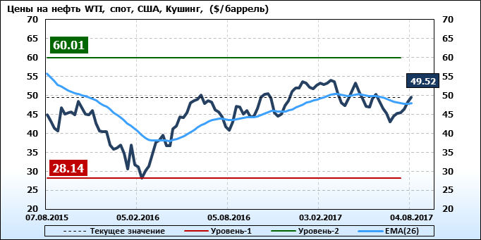 Цены на нефть сорта WTI с базиса поставки Кушинг выросли на 1.25 до 49.52 долларов за баррель. Тренд на рынке WTI бычий. Цена на сорт MARS упала на -0.5 до 48.05 долларов за баррель.