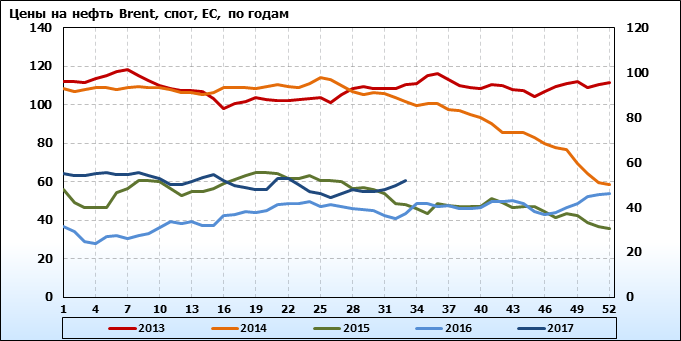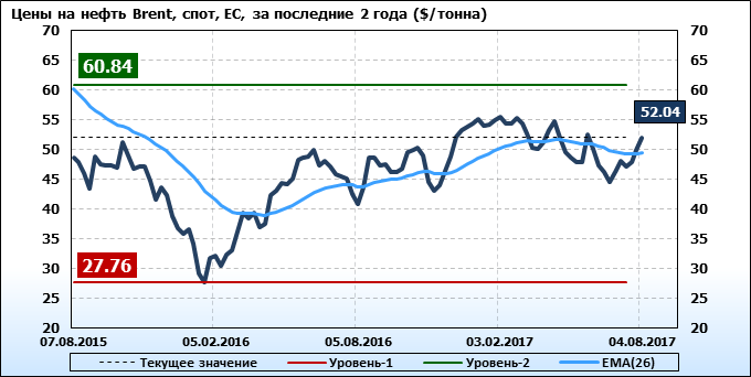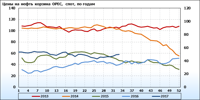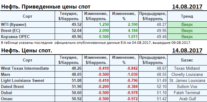 Цены спот на нефть по сортам и базисам. Данные на 14.08.2017