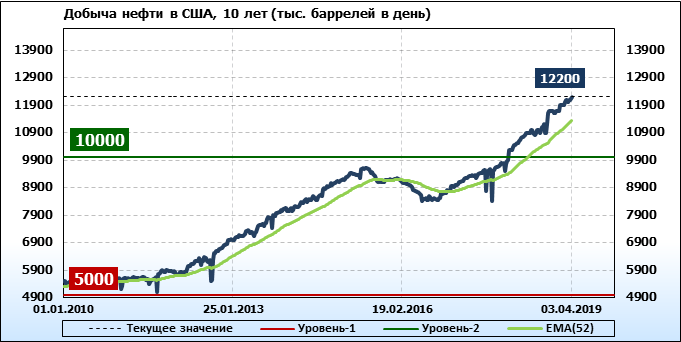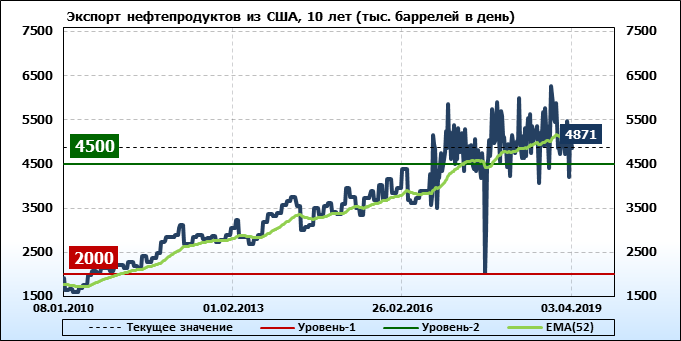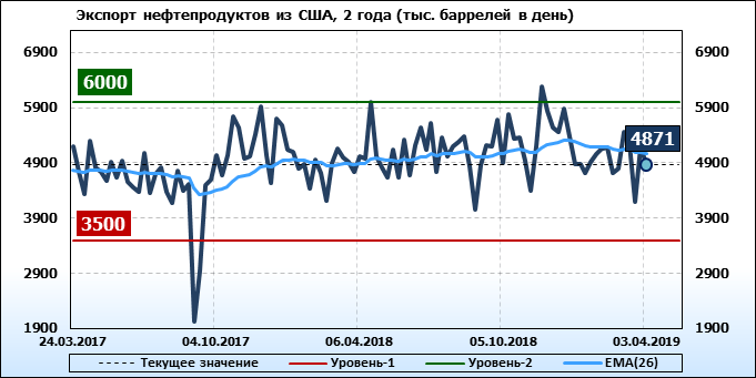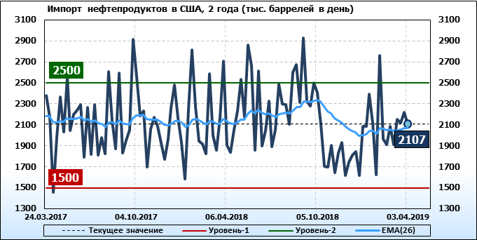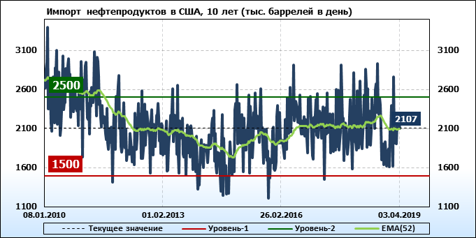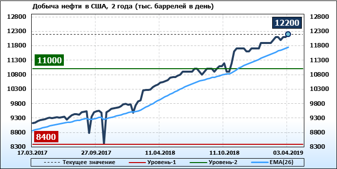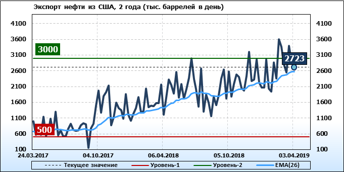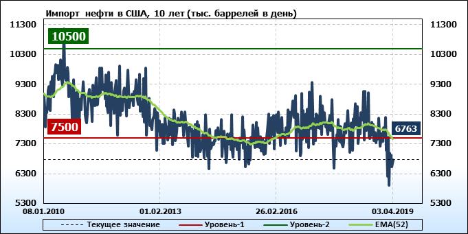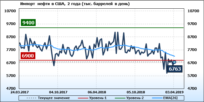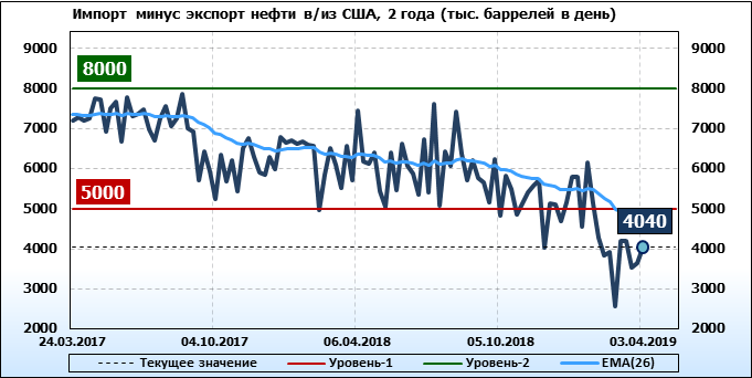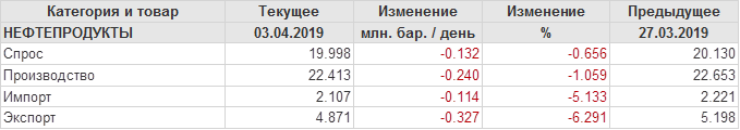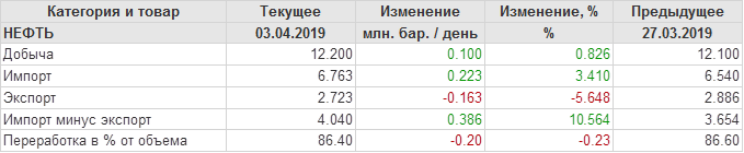 Добыча, импорт, экспорт нефти. США. EIA. Данные на 03.04.2019