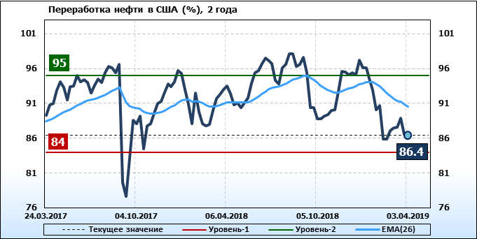 Коммерческие запасы нефти в США, EIA. Данные на 03.04.2019