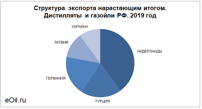 В 2019 году объем поставок дистиллятов и газойлей на экспорт достиг 8651 тыс. тонн. Данный объем на текущий момент составляет 16% от объема прошлого 2018 года.