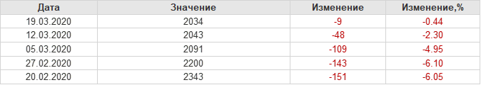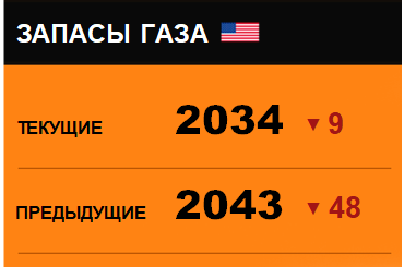 По сообщению статистической службы EIA от 19.03.2020 запасы газа в США на 12.03.2020 составили 2034 млрд. куб. футов. За неделю запасы природного газа в хранилищах упали на 9 млрд. куб. футов. По итогам недели падение запасов газа составило 0.44 процента.
