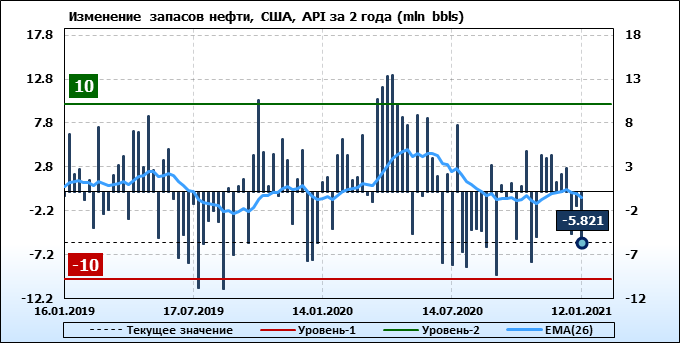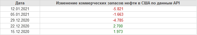 Коммерческие запасы нефти в США по данным института API упали на 5.821 млн. баррелей.