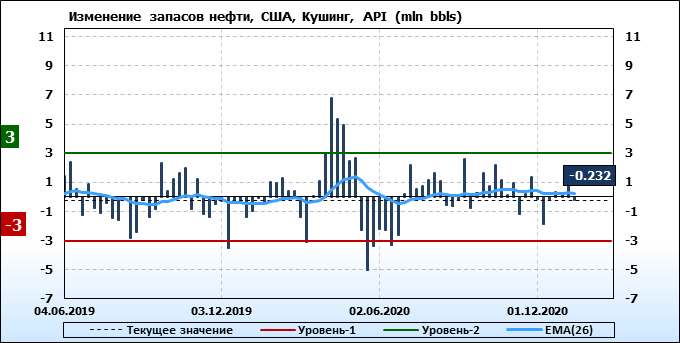 Запасы в хранилище Кушинг по данным института API упали на 0.232 млн. баррелей.