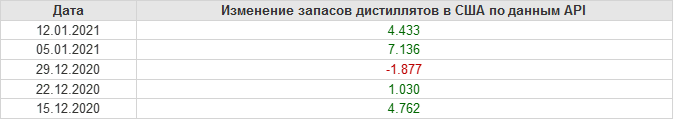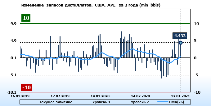 Запасы дистиллятов в США по данным института API выросли на 4.433 млн. баррелей.