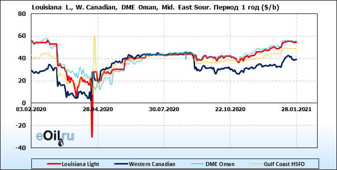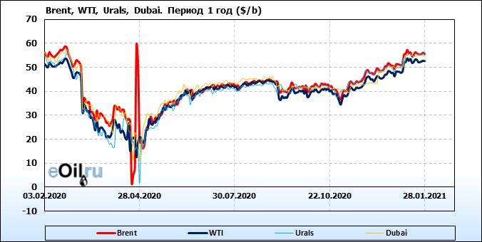 Нефть. Цены по сортам на 28 января 2021