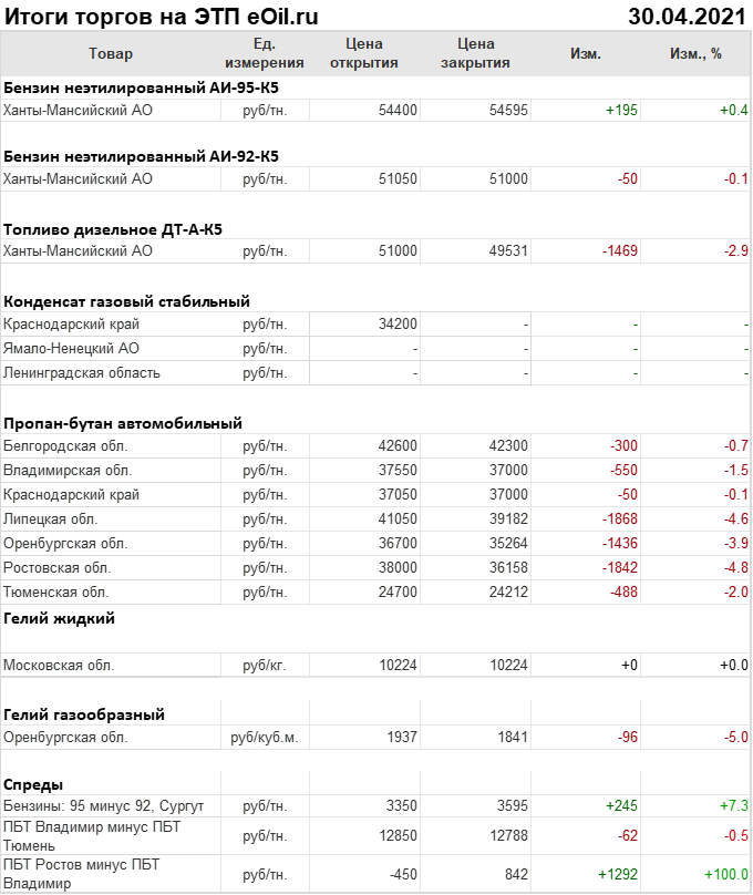 Итоги торгов на ЭТП eOil.ru с 26 по 30 апреля 2021