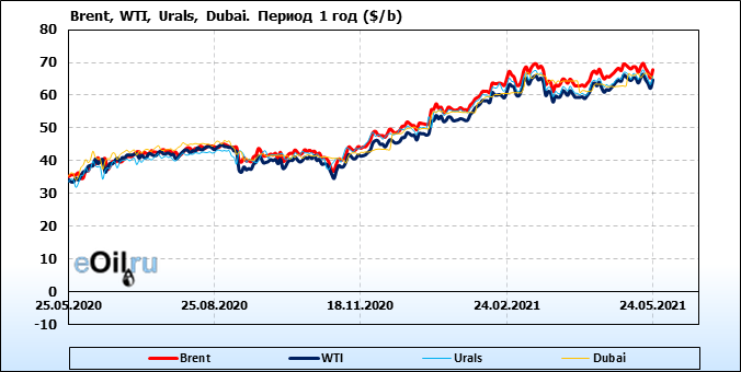 Нефть. Цены по сортам на 24 мая 2021