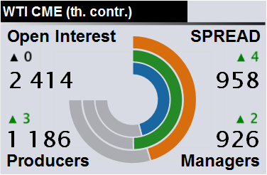За прошлую неделю разница между OI производителей и OI управляющих выросла на 9 492 контракта. Разница между длинными позициями производителей и управляющих сократилась на 15 881 контракт. Разница между короткими позициями производителей и управляющих выросла на 19 844 контракта.