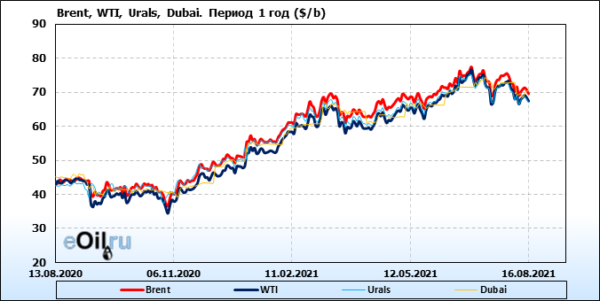 Цены на нефть снижаются в понедельник в связи с сигналами, что распространение нового штамма COVID-19 «дельта» начало негативно сказываться на китайской экономике. Число новых случаев заражения коронавирусом находится на близких к рекордным уровнях в таких странах как Таиланд, Вьетнам и Филиппины. При этом, последние данные Baker Hughes указали на рост активности американских сланцевых компаний. Число действующих нефтяных буровых установок в США на прошлой неделе увеличилось на 10 единиц, до 397 установок. Рост стал самым существенным с апреля.