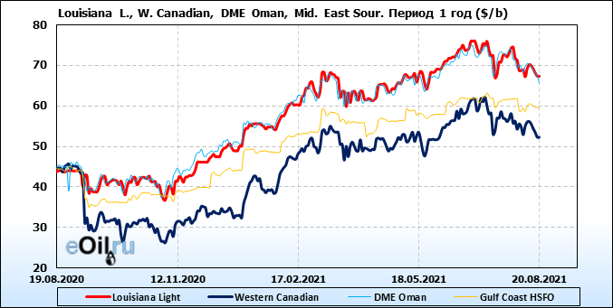 Нефть. Цены по сортам на 20 августа 2021