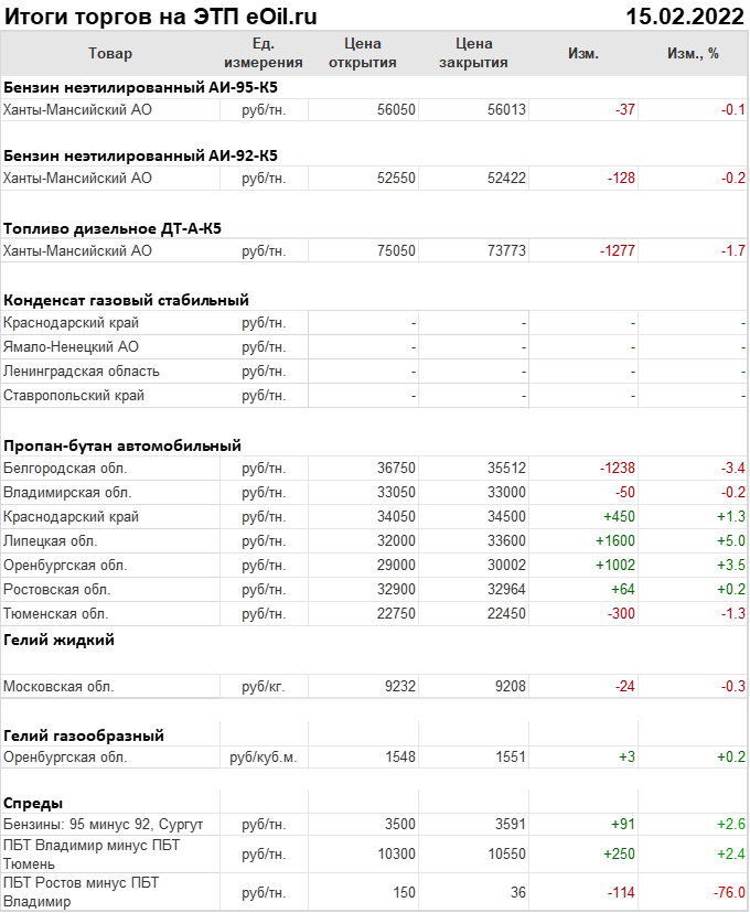 Итоги торгов на ЭТП eOil.ru 15 февраля 2022