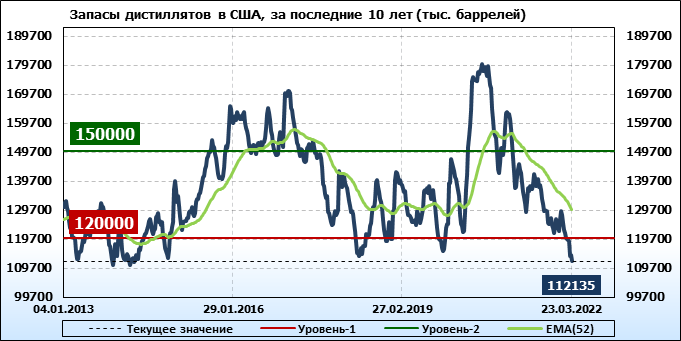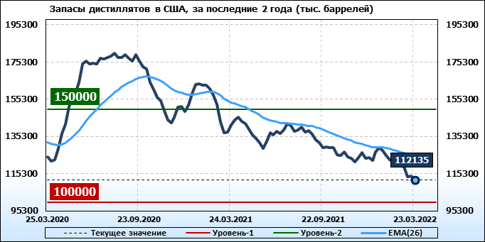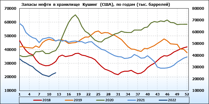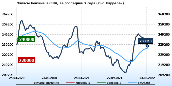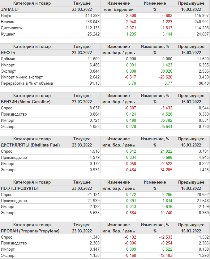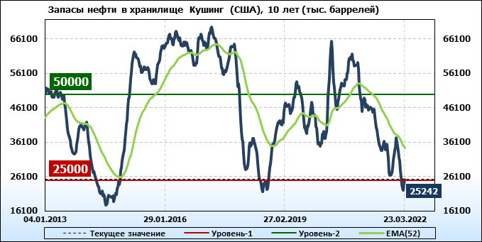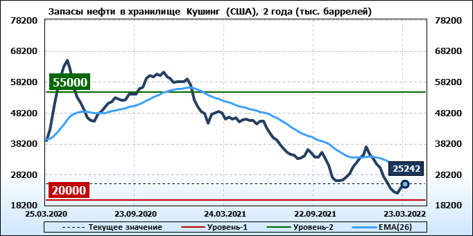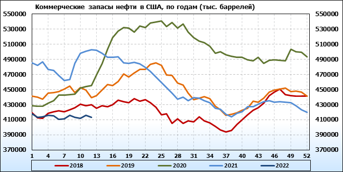 EIA. Коммерческие запасы нефти в США на 23 марта 2022