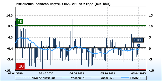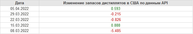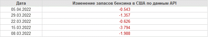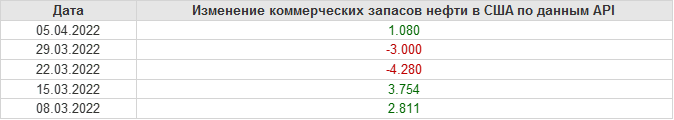 API. Изменение запасов нефти в США на 5 апреля 2022