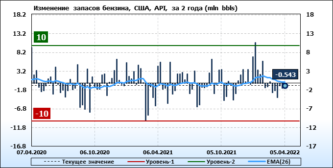 Запасы бензина в США по данным института API упали на 0.543 млн. баррелей.
