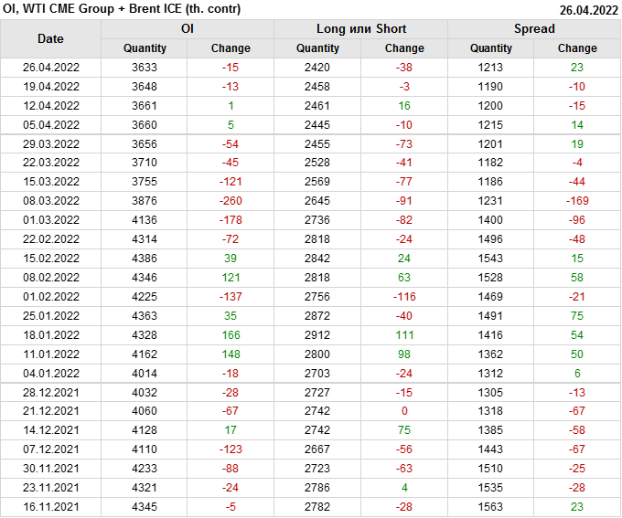 Brent+WTI. Открытый интерес на 30 апреля 2022