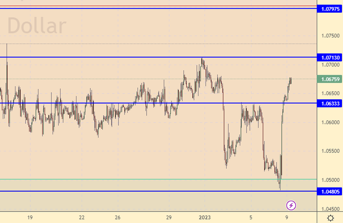 Замедление инфляции в Еврозоне не заставило быков отказаться от посещения уровня 1.0800. Можно предположить, что ЕЦБ не станет высоко задирать ставку. Зачем? Ведь инфляция и так снижается. С другой стороны, инфляция замедляется и в США, что также может привести к приостановке агрессивной политики ФРС. Пока рынок ставит на то, что спред между ставками центральных банков ЕС и США сузится. Так можно и на 1.1500 сходить.