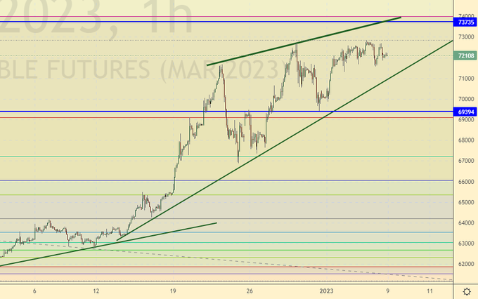 Покупка: при подходе к 69400. Стоп: 69100. Цель: 83000.