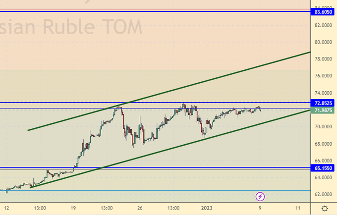 Всё просто. В случае роста выше 73.00 рынок пойдет к 83.00. Возможно, что на данный момент курс даже мог бы быть и ниже, но страх перед будущим намного сильнее текущих оценок ситуации. Несмотря на падение объемов внешней торговли спрос на доллар сохранится в обозримой перспективе.