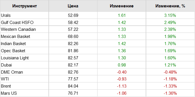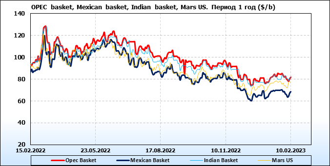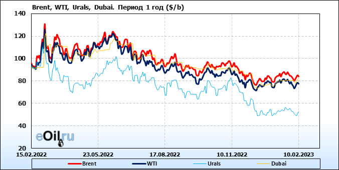 Нефть. Цены по сортам на 10 февраля 2023