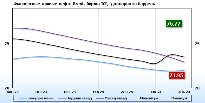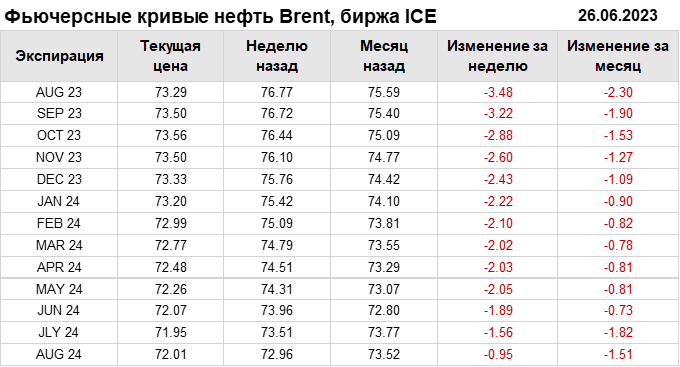 Нефть. Фьючерсные кривые на 26 июня 2023