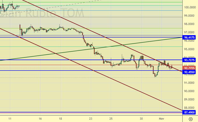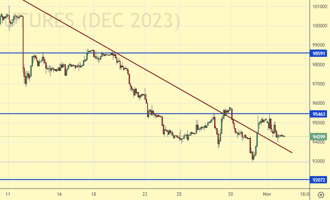 Продажа: при подходе к 96.00. Стоп: 97.00. Цель: 87.00. Кто в позиции от 93.60, держите стоп на 93.80. Цель: 87.60.