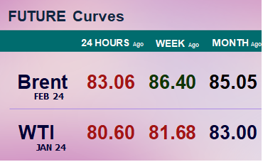 На 06.11.23 стоимость нефти марки Brent на бирже ICE по контракту JAN 24 составила 83.37 доллара за баррель. За прошедшую неделю стоимость нефти марки Brent  упала на 3.74 $/баррель. Как мы видим на графике, фьючерсная кривая имеет периоды, когда более дальний фьючерс дешевле ближнего. Состояние бэквардации наблюдаем на следующих контрактах: FEB 24; MAR 24; APR 24; MAY 24; JUN 24; JLY 24; AUG 24; SEP 24; OCT 24; NOV 24; DEC 24.  Таким образом, трейдеры предполагают, что возможно превалирование предложения над спросом в указанные периоды, если рынок будет находиться на данных ценовых уровнях.