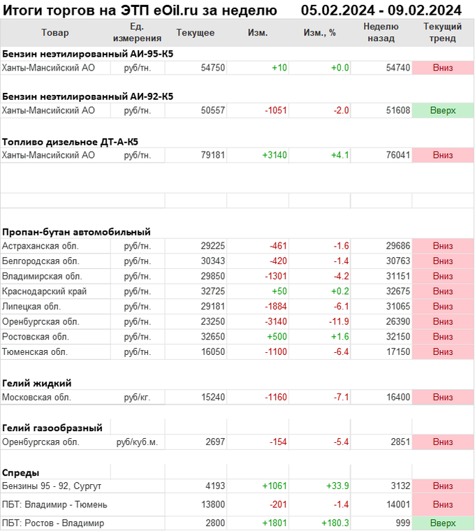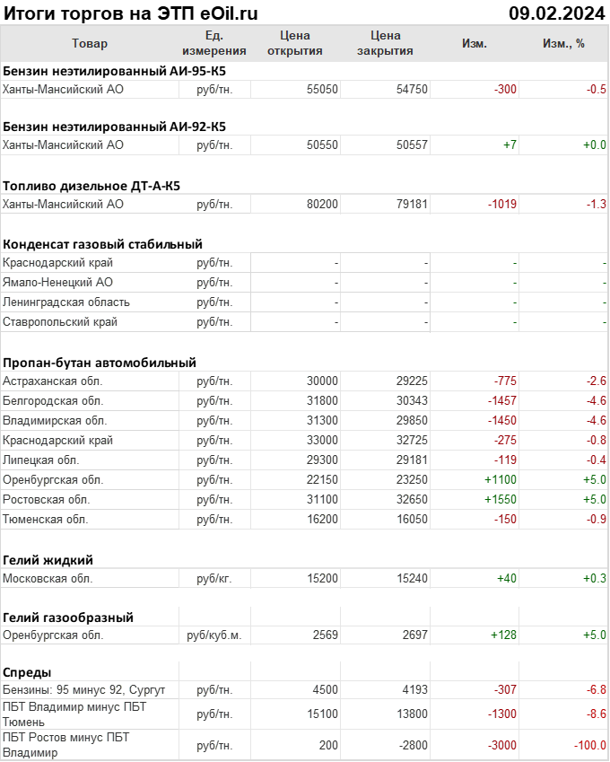 Итоги торгов на ЭТП eOil.ru с 5 по 9 февраля 2024 года