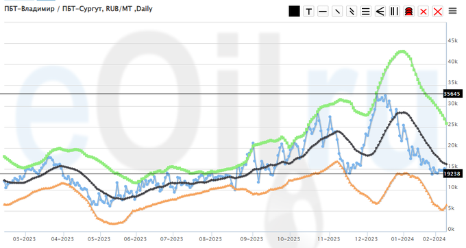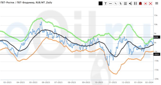 Разница цен между ПБТ на базисе Ростов и ПБТ на базисе Владимир.