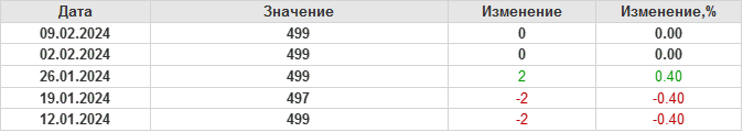 По сообщению Baker Hughes количество нефтяных буровых установок в США на 09.02.24 составило 499 штуки. За неделю количество буровых установок осталось неизменным. На прошлой неделе количество установок, которые прекратили работу составило 3 единиц. Количество установок, которые ввели в эксплуатацию составило 3 единицы.