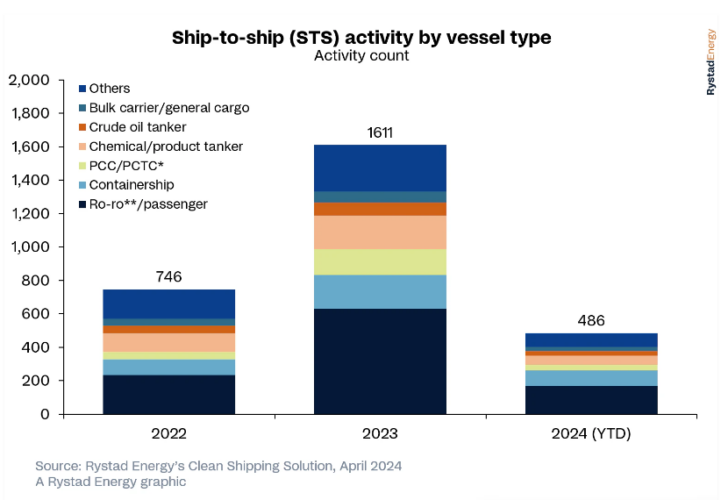 Рис 2. Количество бункеровок способом STS Источник: Rystad Energy