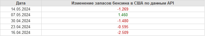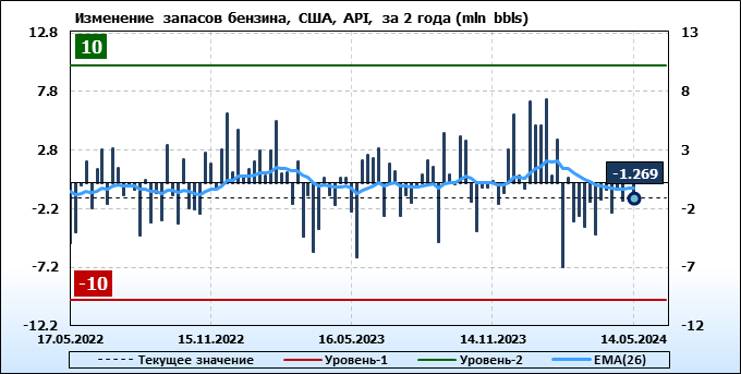 Запасы бензина в США по данным института API упали на 1.269 млн. баррелей.