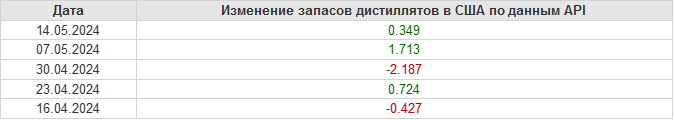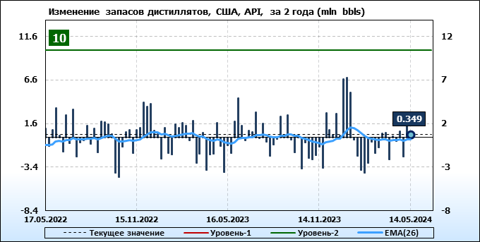 Запасы дистиллятов в США по данным института API выросли на 0.349 млн. баррелей.