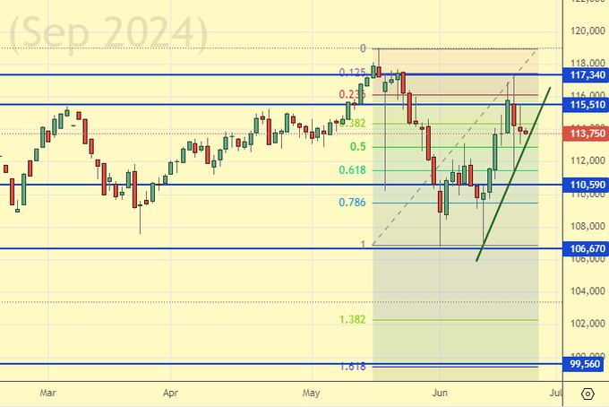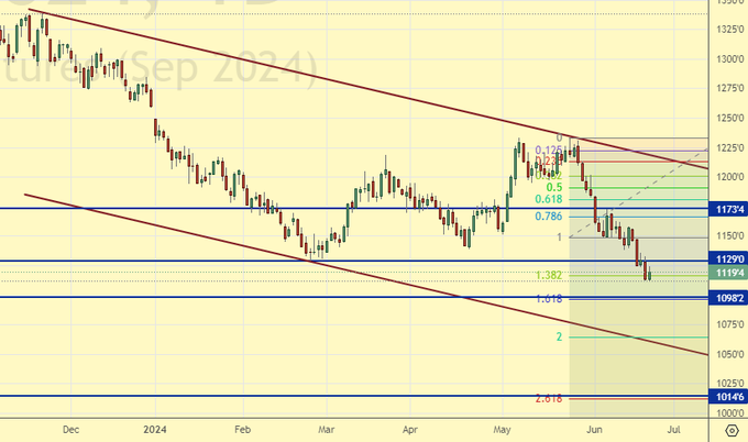 Сценарий роста: перешли на сентябрьский фьючерс, дата экспирации 13 сентября. На фоне хороших ожиданий по урожаю пока не покупаем.