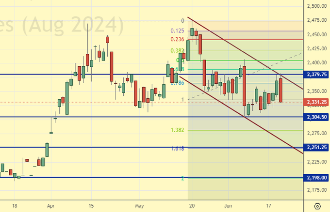 Продажа: нет. Кто в позиции от 2325, перенесите стоп на 2380. Цель: 2120.