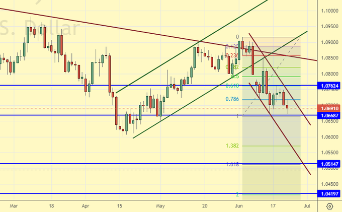 Продажа: сейчас (1.0691). Стоп: 1.0740. Цель: 1.0260.