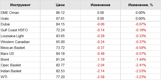 Нефть. Цены по сортам на 24 июля 2024