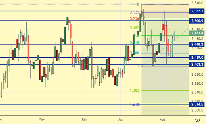 Поддержка – 2448. Сопротивление – 2500.
