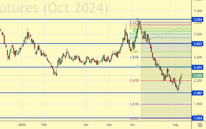 Рынок быстро восстанавливается после совсем необязательного хода ниже 80.00. Впрочем, выше мы тоже пока не поднялись, но можем, и это может стать крайне неприятной историей уже для продавцов. Запасы нефти в США продолжают падать: -3.728, при этом отметим рекорд по добыче 13.4 млн. баррелей в день, который мало что меняет внутри самих США, но сами по себе потуги стоит оценить. Осенью ждем цены выше 80.00 на фоне хорошего мирового спроса.
