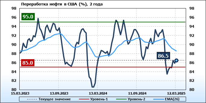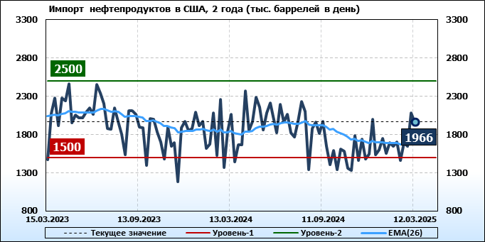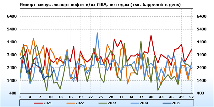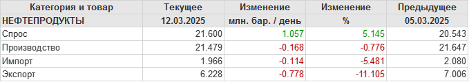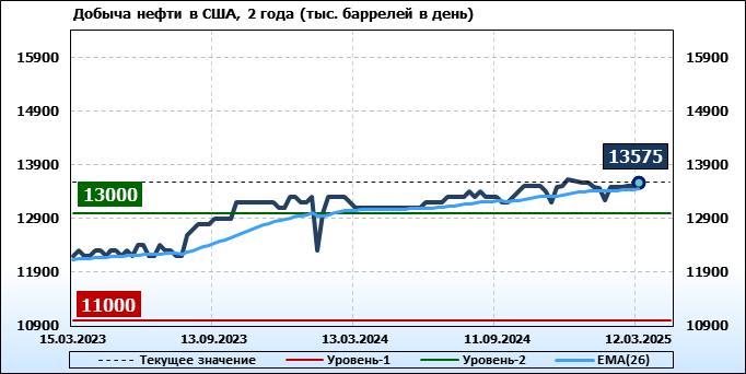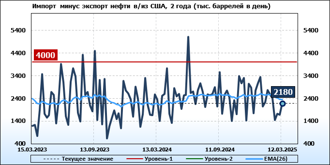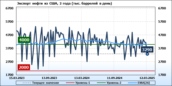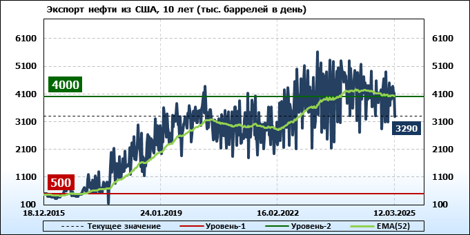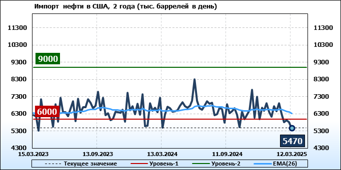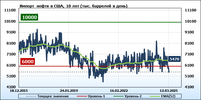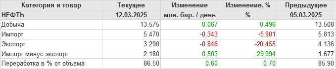 EIA. Добыча, импорт, экспорт нефти в США на 12 марта 2025
