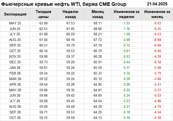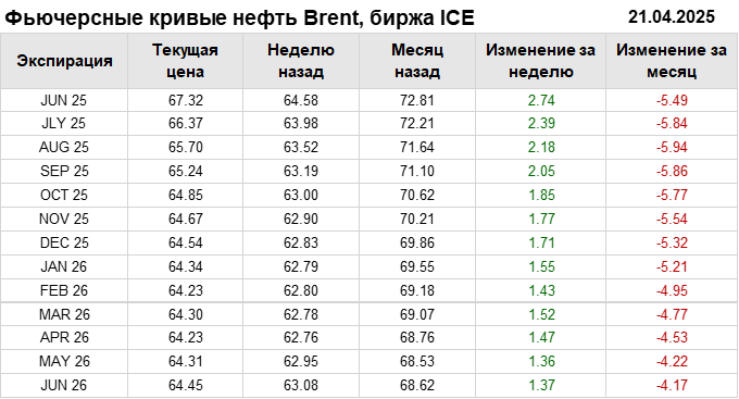 Нефть. Фьючерсные кривые на 21 апреля 2025