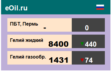 Сегодня, за прошедшую торговую сессию на площадке eOil.ru были показаны следующие результаты электронных аукционов: в 12:00 Мск.,гелий жидкий, базис поставки Московская область — 8400 руб./тн., c НДС 20%, (-440 руб./тн.). |