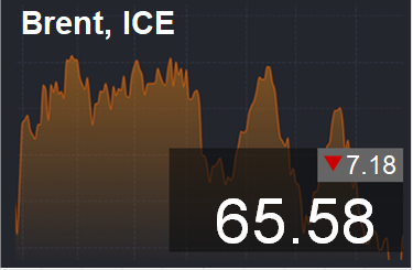 Мировые цены на нефть в пятницу вечером снизили темпы падения, следует из данных торгов. По состоянию на 20.10 мск цена июньских фьючерсов на нефть марки Brent снижалась на 6,64% — до 65,48 доллара за баррель, майских фьючерсов на WTI — на 7,56%, до 61,89 доллара. Днем нефть обеих марок дешевела на 7-8%. С четверга стоимость Brent обвалилась на 13,1% и достигла минимальных с 2021 года значений. WTI подешевел на 14,1%. |
