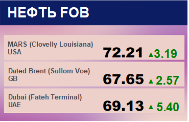 По состоянию на 18.59 мск цена сентябрьских фьючерсов на нефть марки Brent росла на 1,38%, до 67,08 доллара за баррель, августовских фьючерсов на WTI — на 1,83%, до 65,55 доллара.